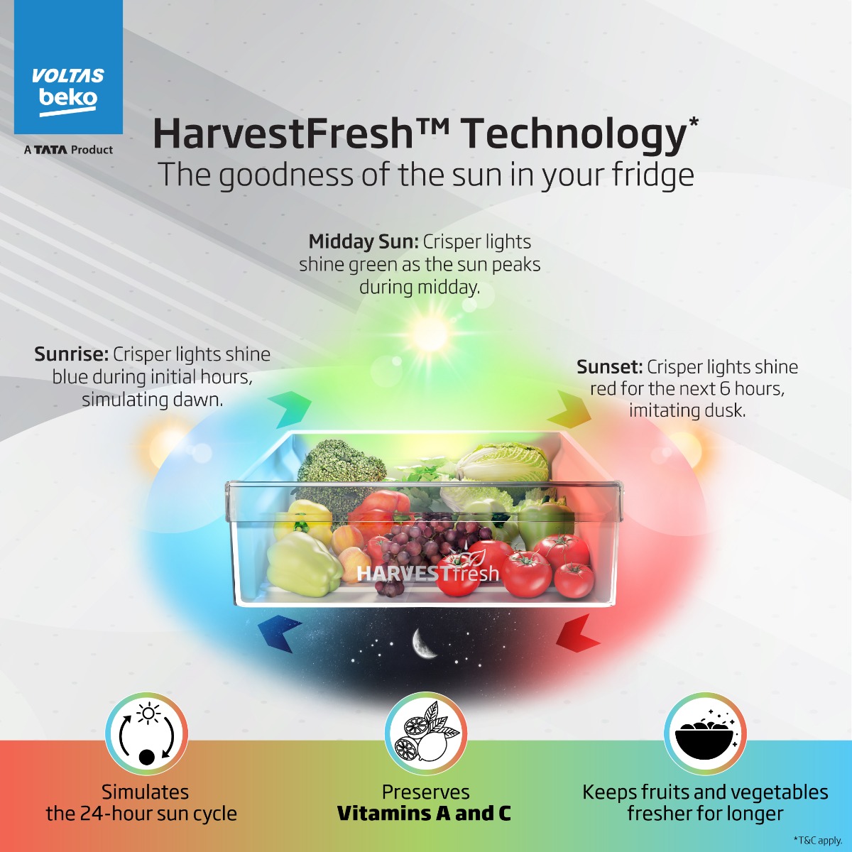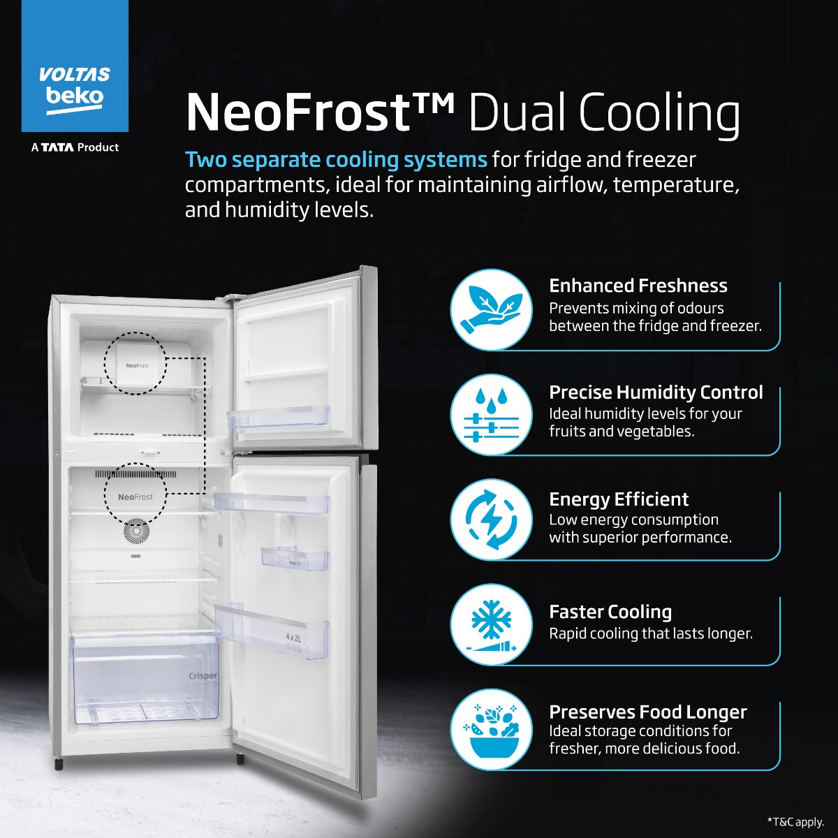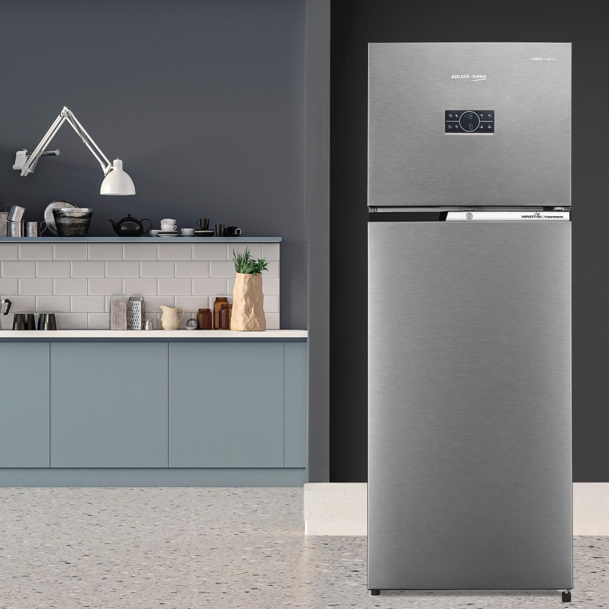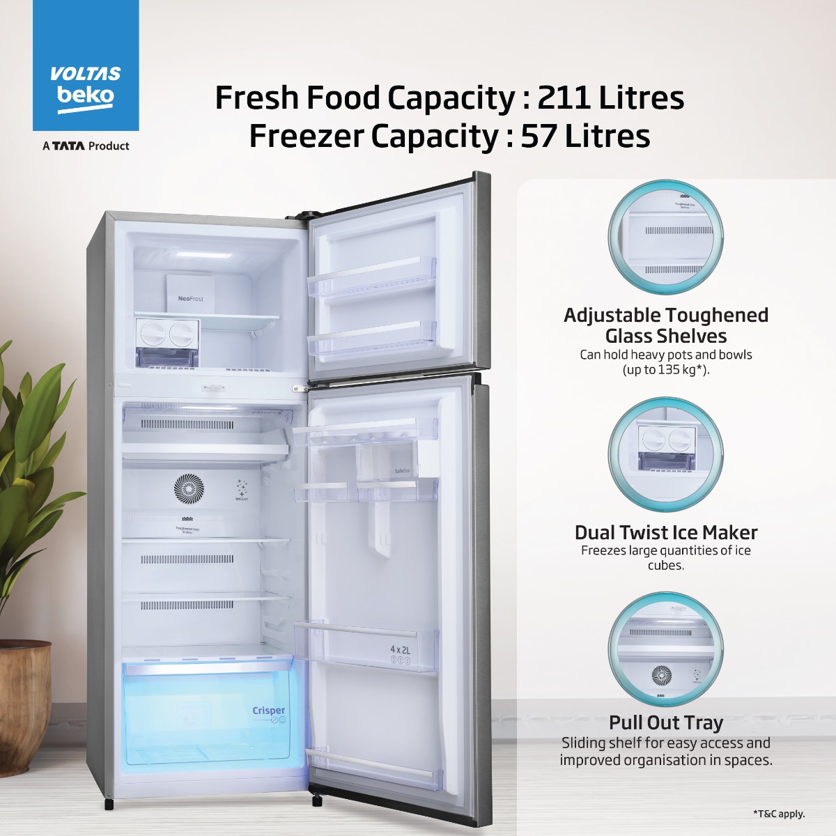 Voltas Beko 268 L, 3 Star, Frost Free Double Door Refrigerator with 11 in 1 Convertible and Harvest Fresh Technology (RFF315C/WPV501RXID, Brushed Silver)