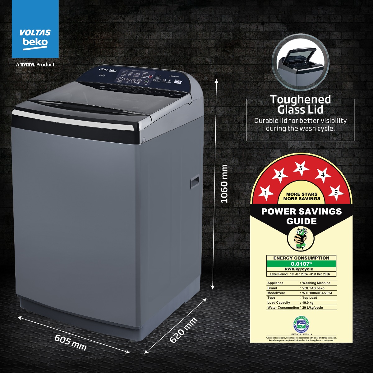 10 Kg, 5-Star, Fully Automatic Top Load Washing Machine (WTL1006UEA / OBS1060, Grey)
