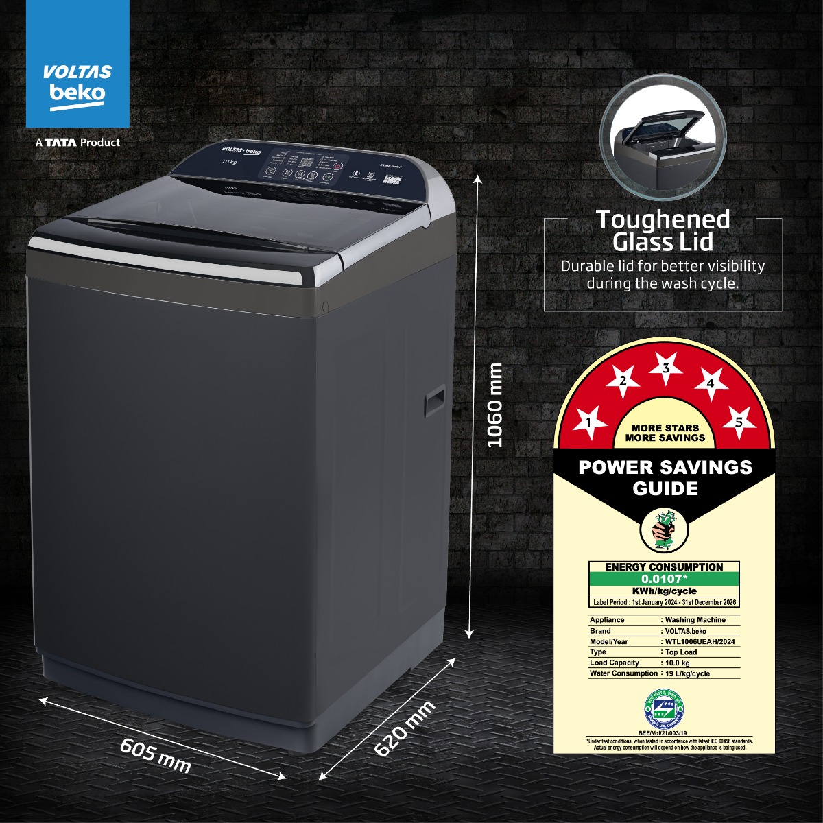 10 Kg, 5-Star, Fully Automatic Top Load Washing Machine (WTL1006UEAH / OBS3060, Dark Grey)